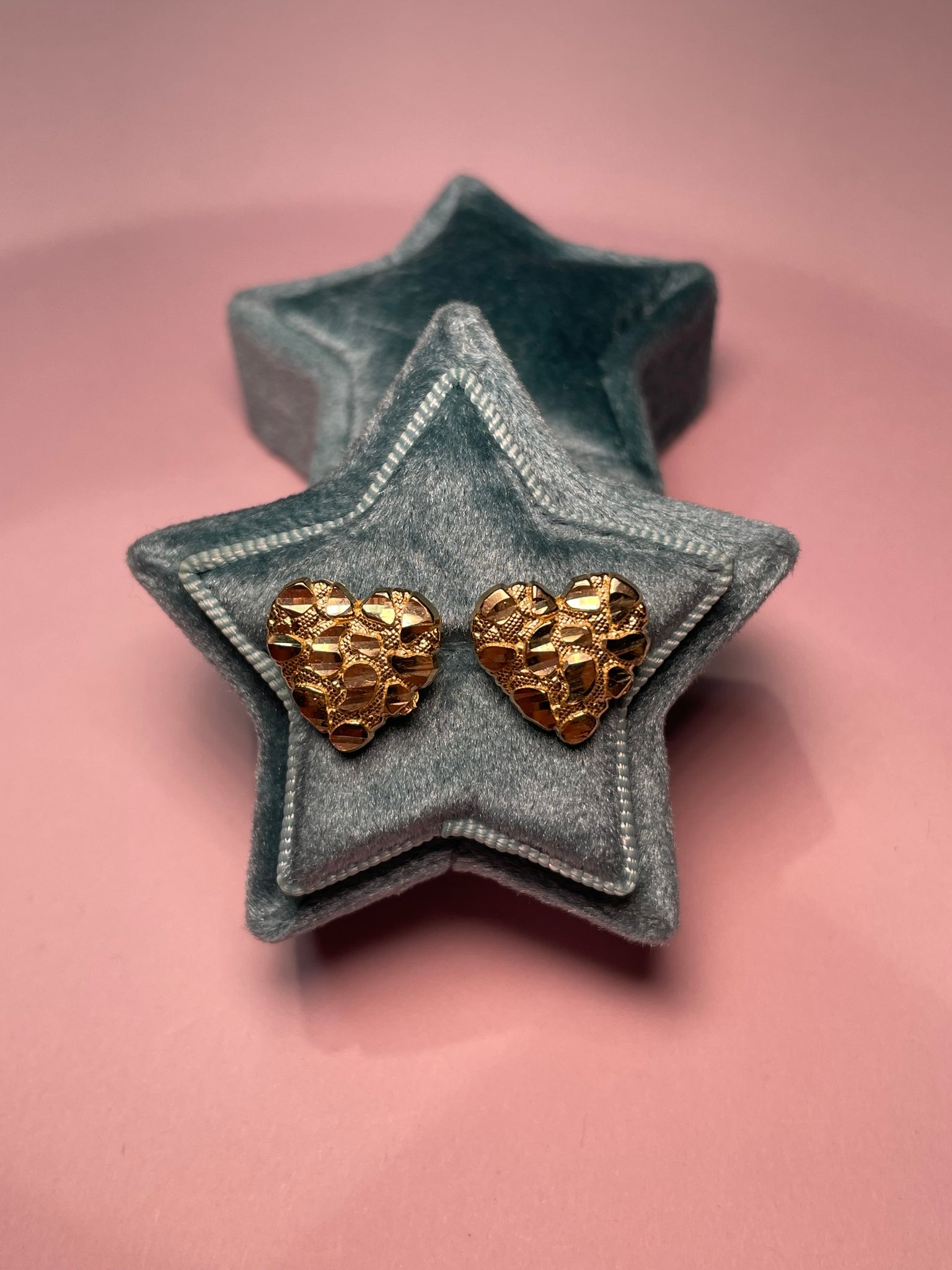 10K solid gold jumbo heart nugget studs!